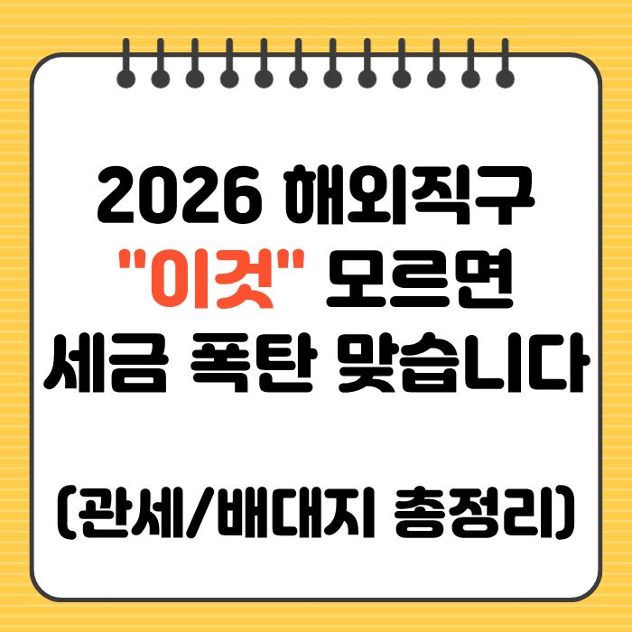 🧐 30초만 읽어보세요! "알리, 테무 다음은 징동?" 2026년 직구 판도가 완전히 바뀌고 있어요.EU 면세 종료 소식부터 구매일 기준 관세 적용까지,지금 모르면 손해 보는 2026년 해외직구의 모든 것을 정리해 드립니다. 솔직히 해외직구, 막상 하려니 '어렵다', '복잡하다'는 생각부터 드시죠?저도 처음엔 관세 계산하다 머리가 지끈거려서 포기한 적이 한두 번이 아닙니다. 하지만 2026년인 지금, 국내에선 못 구하는 유니크한 아이템과반값 할인 기회를 놓치기엔 너무 아깝잖아요제가 직접 겪으며 배운 '실패 없는 직구 노하우' 정리해드리겠습니다.😊 1. 2026년, 무엇이 달라졌을까?2026년은 직구족에게 정말 중요한 해예요.글로벌 물류가 안정되면서 '총알 배송'이 가능해졌습니다.💡 2026 핫 트렌..