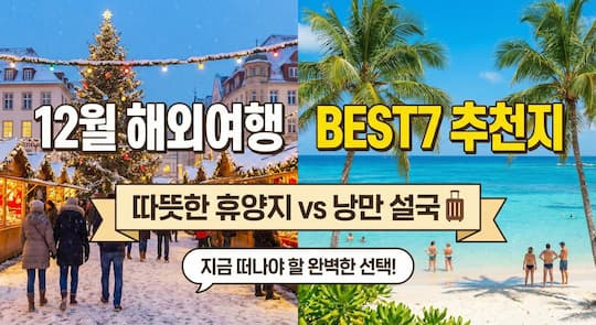 어느덧 2025년의 마지막 달, 12월이 찾아왔습니다. 남은 연차를 소진하기 위해,혹은 한 해 동안 수고한 나에게 주는 선물로 해외여행을 계획하는 분들이 많으실 텐데요.12월의 여행은 크게 두 가지로 나뉩니다.추위를 피해 떠나는 '따뜻한 나라' 이거나, 겨울의 낭만을 극대화한 '눈 내리는 나라'이거나.오늘은 여행의 목적과 취향에 따라 골라 갈 수 있는 12월 해외여행 추천지 BEST 7을 소개합니다.실패 없는 연말 여행을 위한 선택, 지금 시작합니다.1. 낭만 가득한 설국, [일본 삿포로]겨울 여행의 대명사죠. 12월의 삿포로는 도시 전체가 하얀 눈으로 뒤덮여 동화 같은 풍경을 자랑합니다.추천 이유: 12월부터 본격적인 적설량이 기록되며, 화이트 크리스마스를 즐기기에 가장 완벽한 곳입니다.즐길 거리: 오..